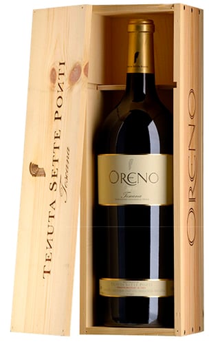 Oreno har sit navn efter floden, der krydser Tenuta Sette Pontis jord. Et Bolgheri blend af de klassiske franske druer, Merlot, Cabernet Sauvignon og Petit Verdot, men produceret centralt i Toscana. Vinen konkurrerer både point- og kvalitetsmæssigt med toscanske kæmper som Tiganello, Sassicaia og Ornellaia, upåagtet at den kun koster en brøkdel.